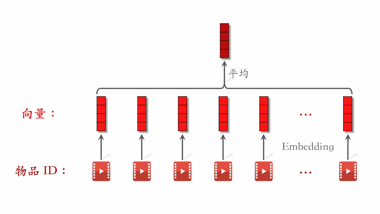 • nn 个向量取平均,作为用户的一种特征。